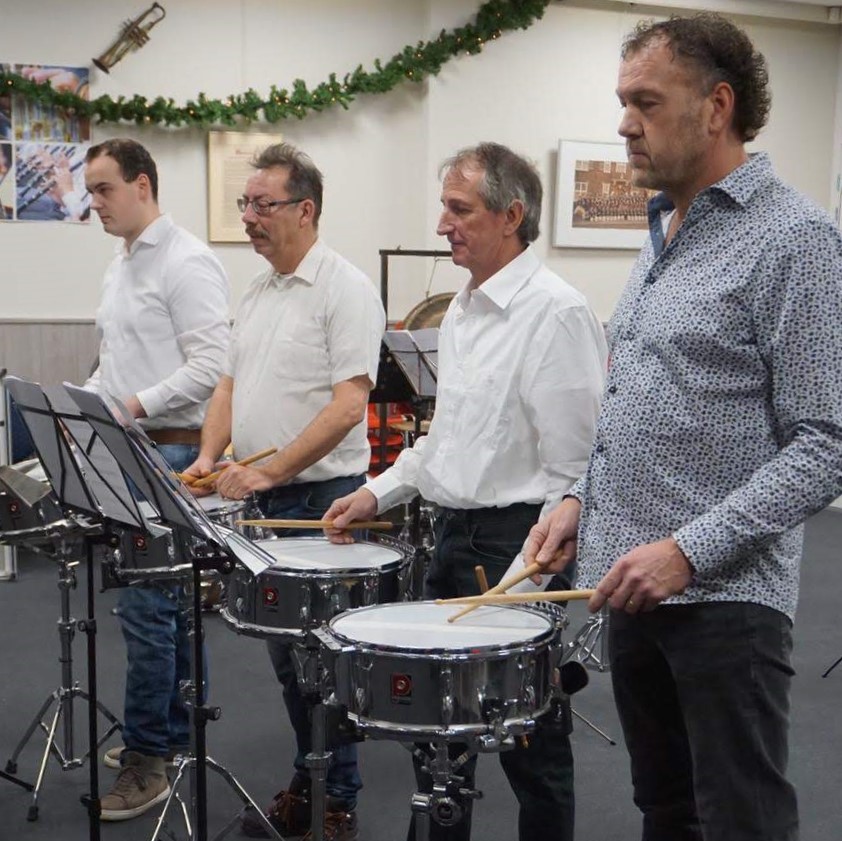 Gezamenlijk optreden door de slagwerkgroepen van fanfare Concordia Liempde en Boxtel's Harmonie.